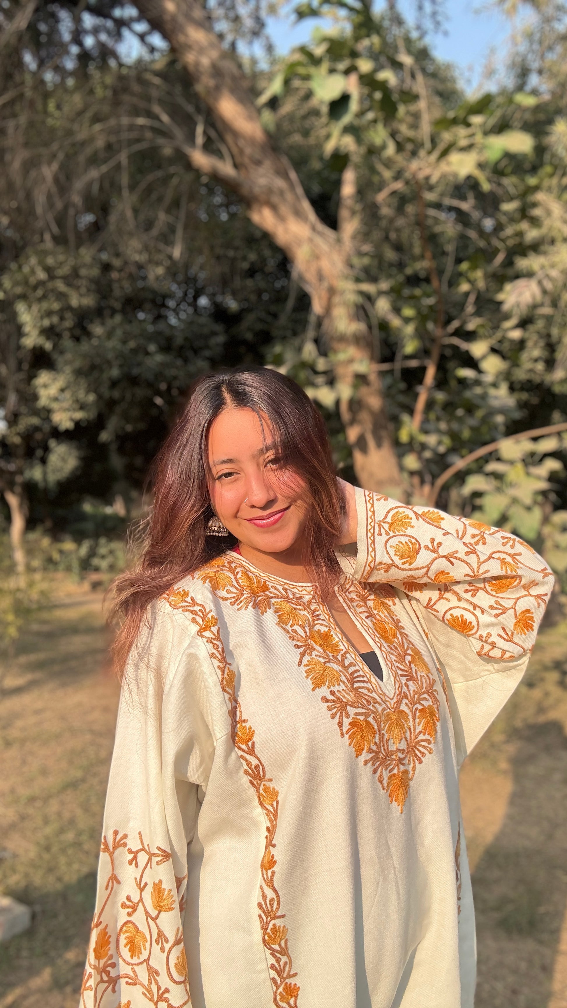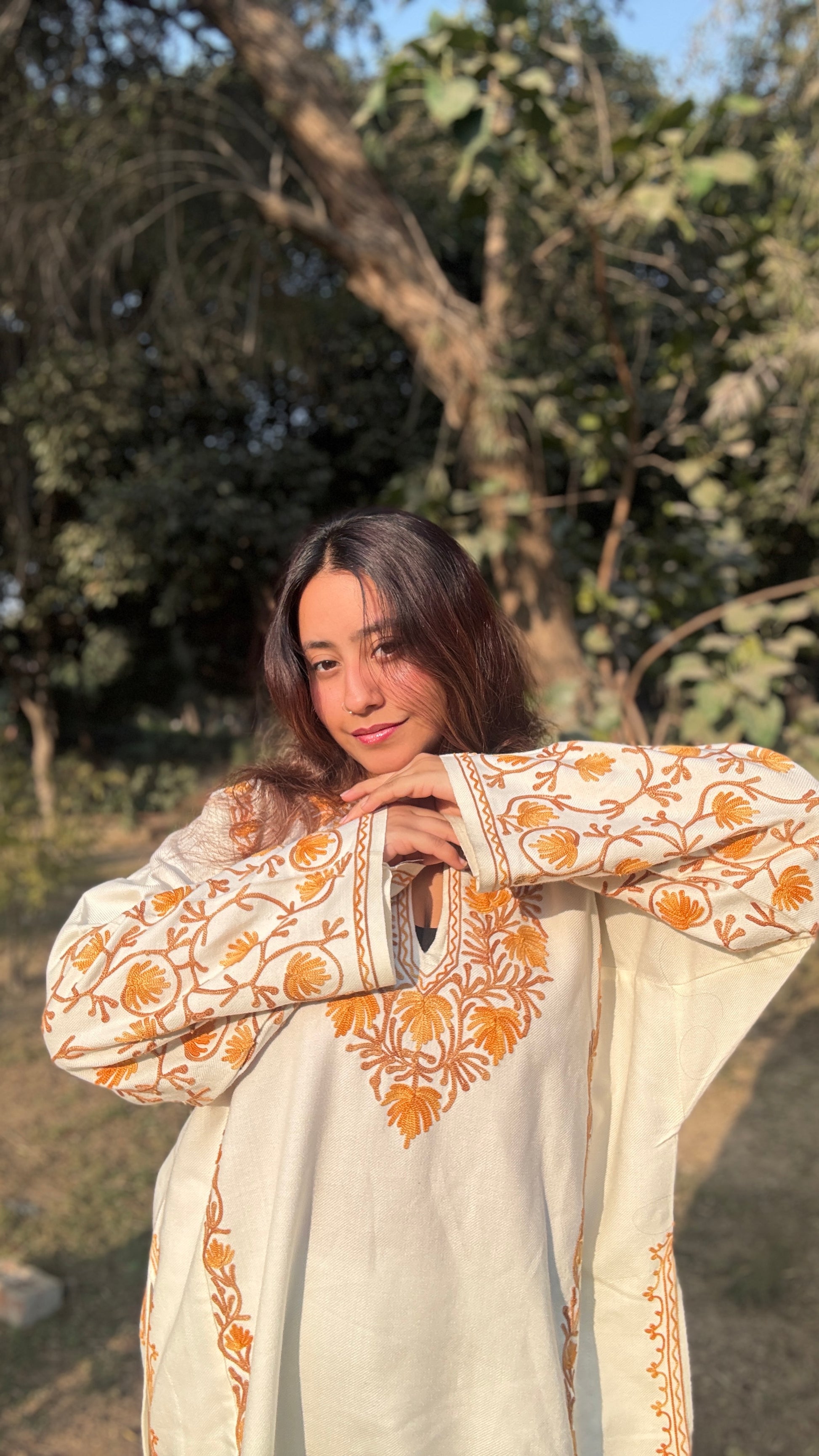 - Crafted from premium wool, this traditional Pheran delivers exceptional warmth through its substantial fabric weight and insulating properties.